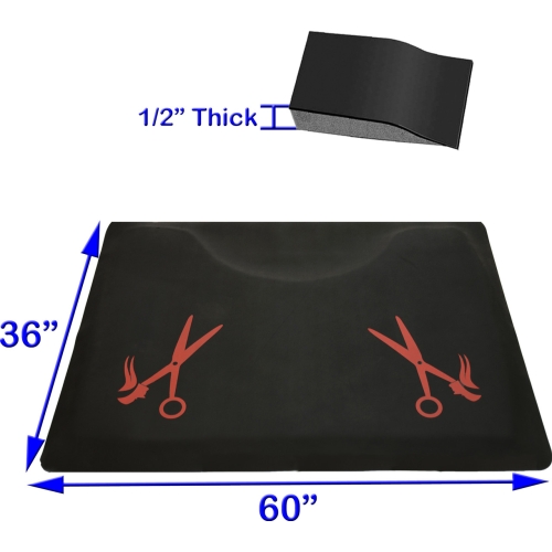 1/2" Thick Professional Rectangle Anti-Fatigue Barber Salon Floor Mat Salon Scissor Design
