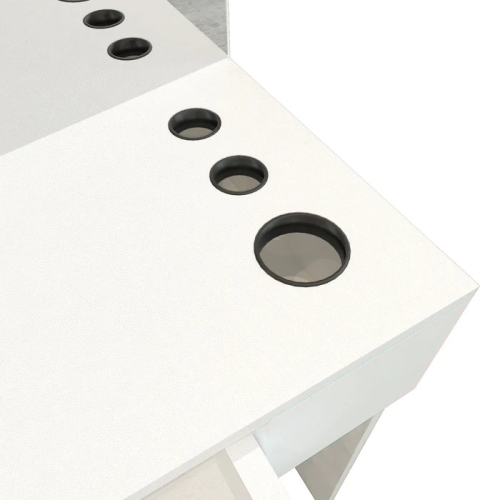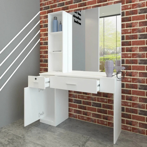 This line wall-mounted styling station is multifunctional ample storage workstation.Its clean lines mean that it will look great in just about any salon. This station is made out of particle board.