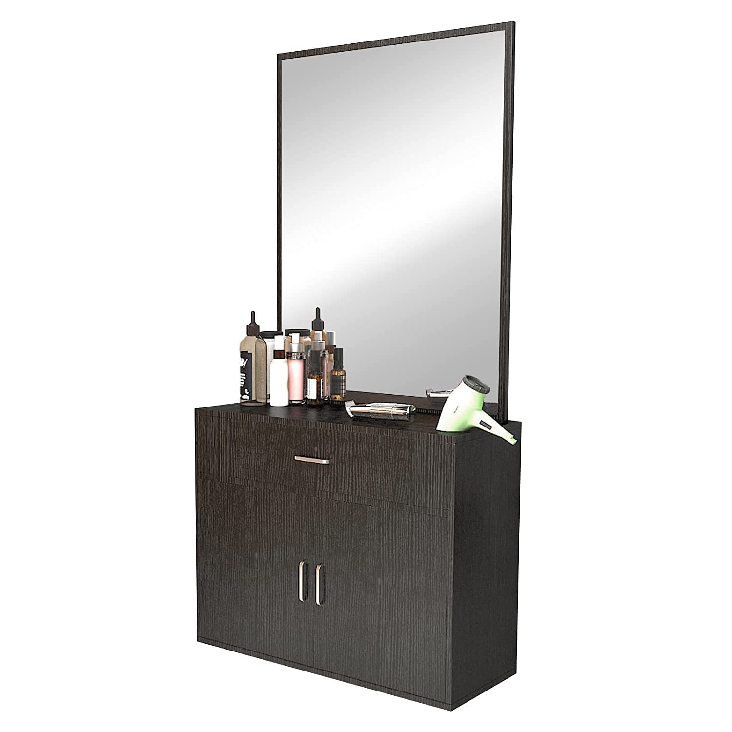 - Practical & Capable:The station has a large mirror, mid cabinet with 1 large drawers, and one large bottom cabinet.You can organize your items and decorate your room with your creativity. Once properly installed, the drawer slide smoothly and doors close quietly