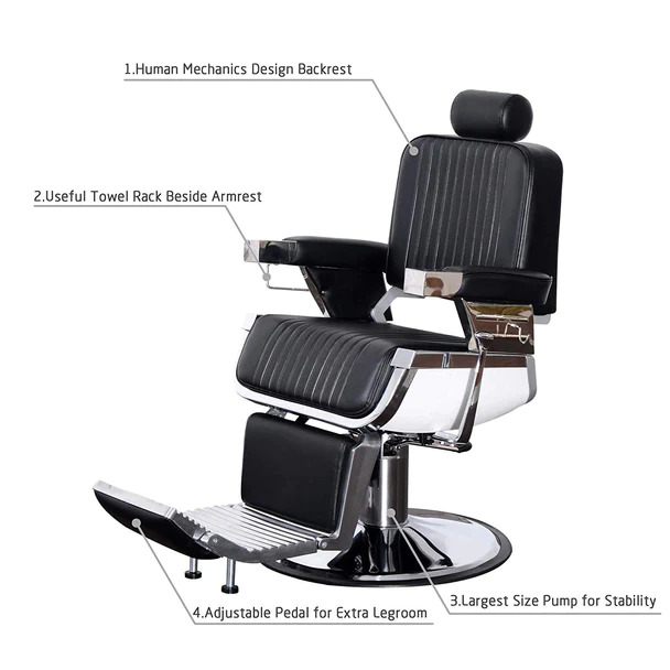 This classic and deluxe barber chair would be a perfect addition for Barbershop, Beauty Salons, Tattoo Parlors and more. Textured synthetic leather with high density sponge provides a comforting place for your customer to relax. An elegant footrest provides support and allows for easy positioning of the client. You and your client will love the luxury and comfort from this timeless example of a quality.