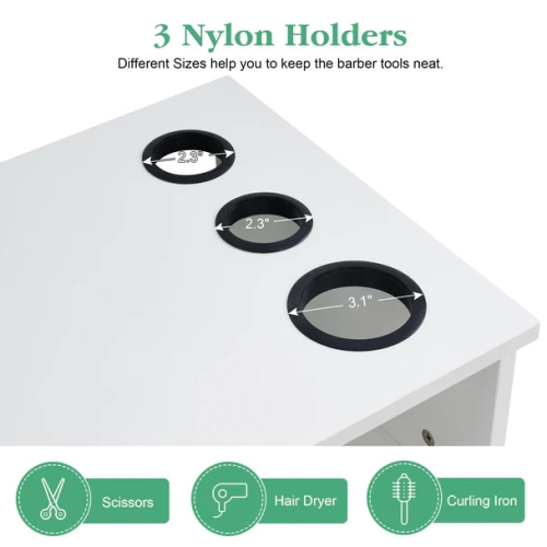 - MULTI-PURPOSE DESIGN: The storage unit comes with 3 different sized tool holders for easily storage of daily used tools, such as curling irons, blow-dryers, and other tools. And tool holders are nylon so that the heating or just used tools should not be put into the holders since it is very hot and so the holders can be melted.