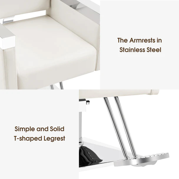 - CLASSIC DISIGN: A salon chair fits anywhere with fluent shape and classic look. Modern design with stainless steel decoration of armrest brings superior durability and classic trend to fit different barbershop and salons. Two colors(Black/Off White) for your choice.