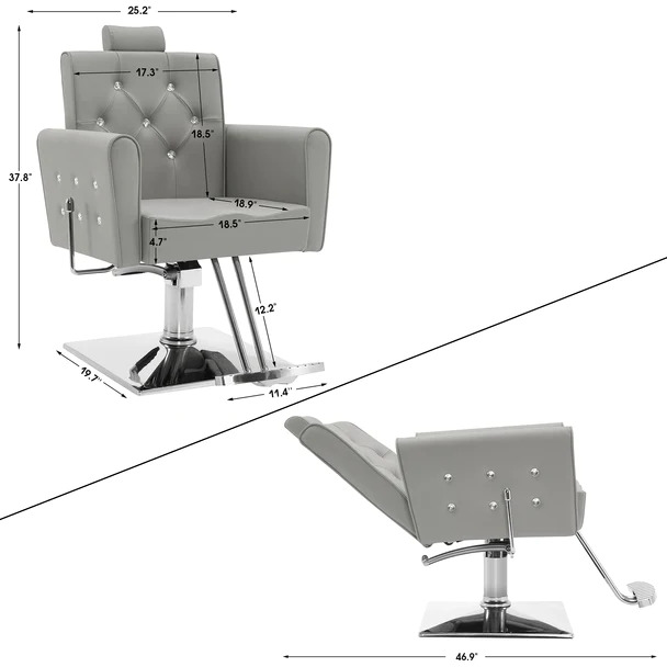 - ANTIQUE DESIGN: Welcome look with exquisite stitching brings elegant and antique taste to the whole style of barber shop/salon shop. Hand-made sequins around the stitching, shining acrylic diamond on the backrest and armrest decorates the soft leather, which adds modern elements to the vintage design.