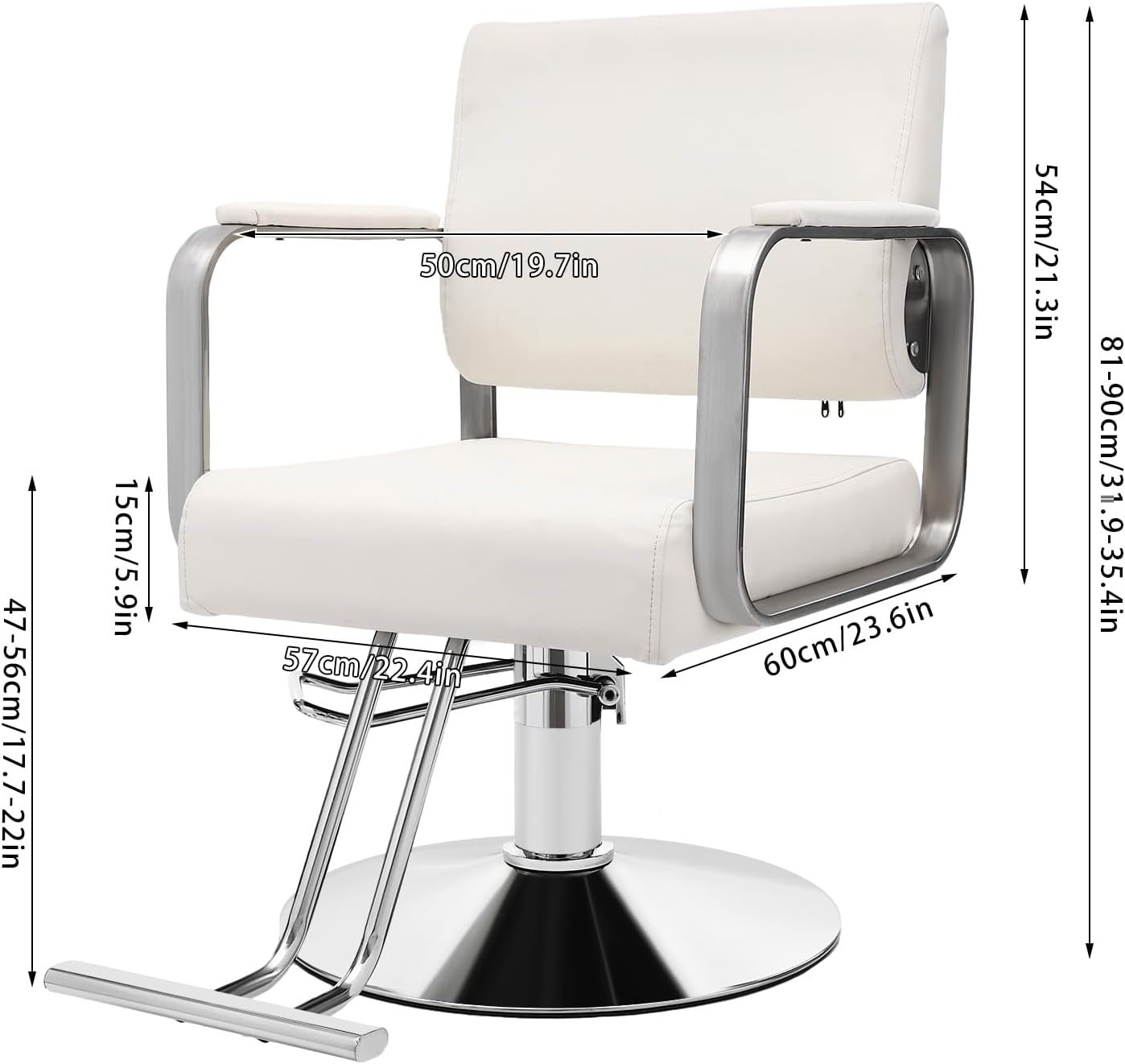 - Our salon chair combines functionality and aesthetics. The PU cushion with built-in rebound sponge and ergonomic backrest provide you with a comfortable sitting experience. Its adjustable height and 360° rotatable design greatly offer more flexibility. In short, with its outstanding performance, user-friendly design, and generous appearance, it is an ideal choice to enhance the professional image and customer satisfaction of your salons.