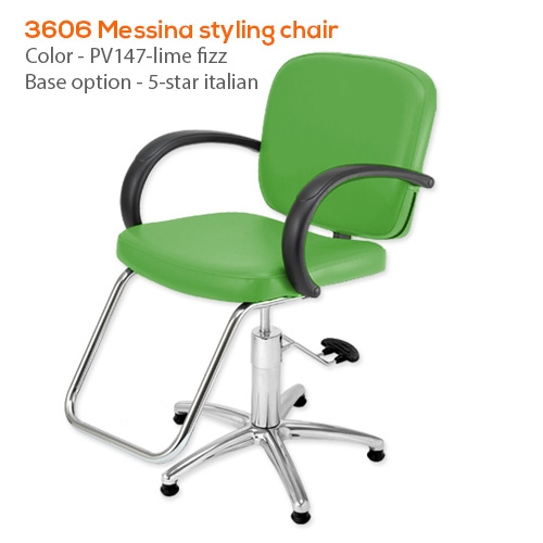The Pibbs 3606 Messina Hydraulic Styling Chair is Made in the USA by Pibbs Industries and is available in 40 different Fabric Colors. Since it is made in the USA this is an extremely high quality salon chair and comes with a 3 year warranty on the Hydraulic Pump. This styling chair by Pibbs is made with black molded urethane arms that are very durable and stylish. It also has a very wide seat that will fit all of your larger customers. If you are looking for a high-quality styling chair that is great looking at an affordable price this is the chair!