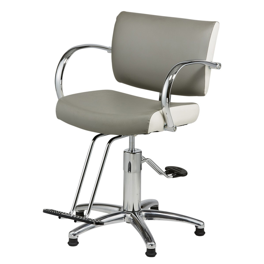 The Pibbs 4506 Bari Styling Chair is manufactured in the U.S.A. 4506 Bari Styling Chair features a cushioned extra-wide seat, a modern low-cut back cushion, a heavy-duty hydraulic pump, two Durable Footrest options, and rounded chrome armrests that give this chair a modern and stylish accent. The Pibbs 4506 Bari Styling Chair is designed with durability, client comfort, and world-class style in mind, while adding a chic, modern touch to any salon.
