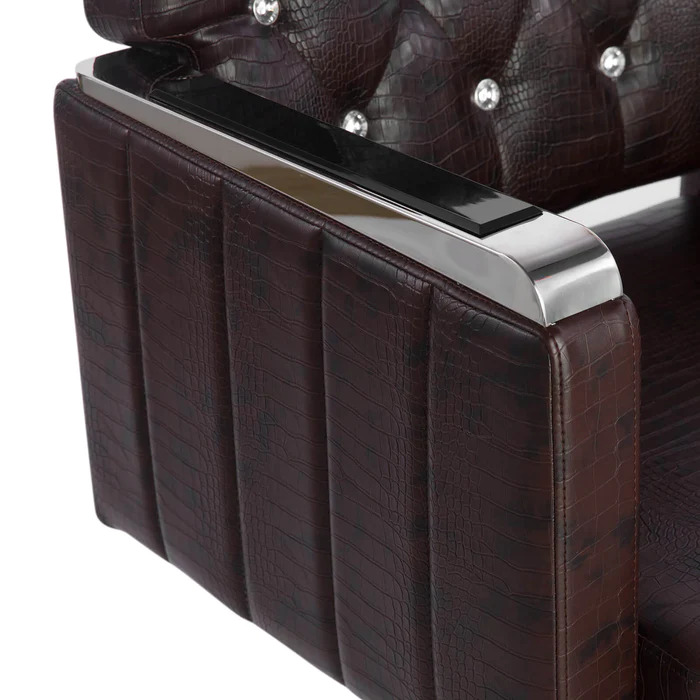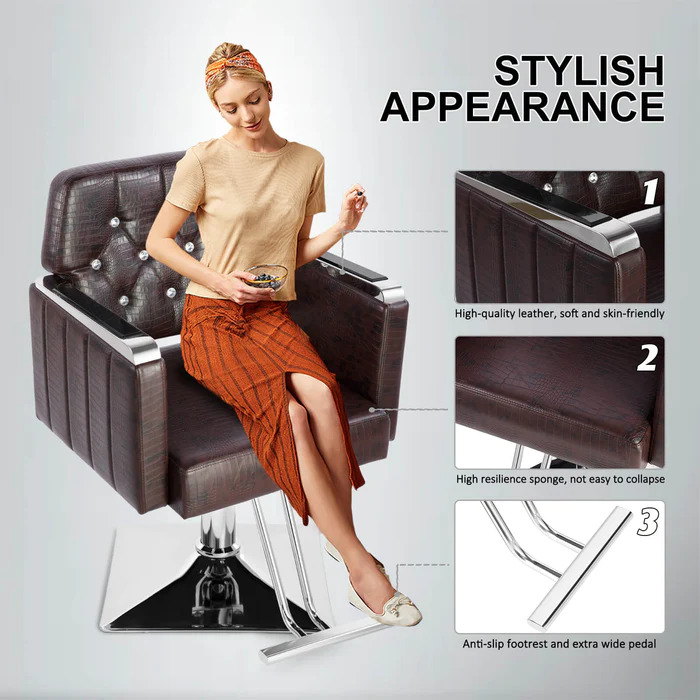 - 2022 Latest Salon Chair: ARTIST barber chair is 2022 newest upgrade ergonomically designed, bringing maximum comfort to your guests. Crocodile grain padded with a high-density sponge and covered with PU leather.