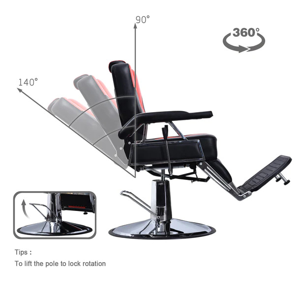 • SPECIAL DESIGN OF TWO LEVERS: Two levers on both sides of the chair for conveniently adjusting the lying angle. No matter which direction our hairstylist works, the chair can be flexibly reclined.Backrest reclines up to 145°(Backrest can be easily adjusted to multiple locking positions by a gas-piston lock & release mechanism).