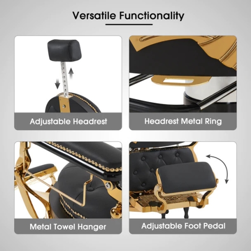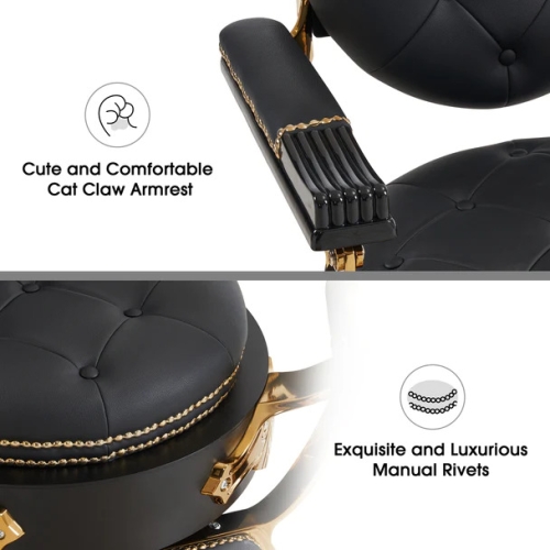 - Work on Every Detail: The cute cat claw armrest allows you to sit on the chair with your fingers on it, which is ergonomic and more comfortable. The towel hanger on the armrest and headrest metal ring behind the chair are more convenient for the barber's work.