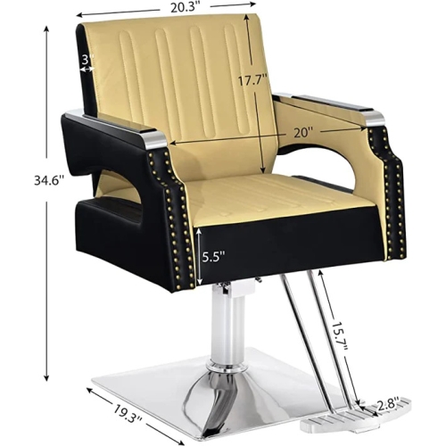 - A Chair Fits Anyone: The seat with the width of 20.5 inches will perfectly fit most clients.The adjustable seat can be raised from 19.7 inches to 25.6 inches, which is beneficial to satisfy most hair stylists.