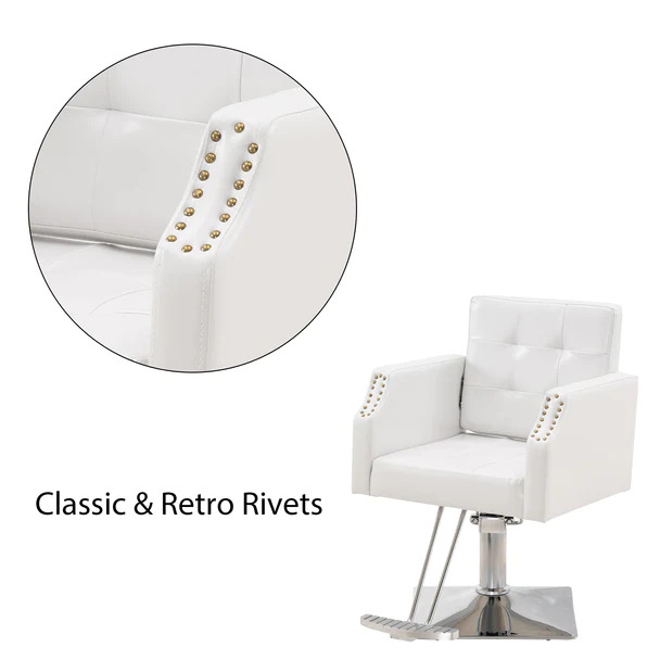 This salon chair, which is equipped with exquisite rivets on the armrests,would be an appropriate chair for any barber shop, salon station or your home salon.With high practicability and quality,our salon chair will provide a comfortable experience with your customer.