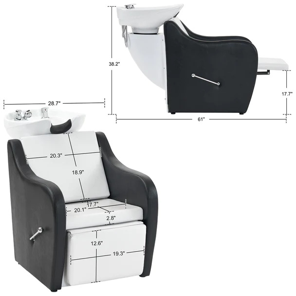 • Shampoo Chair (including the bowl) Dimension: 60.2" x 26.4" x 36.2" (Length x Width x Height)