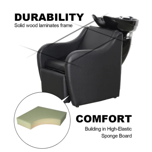 This classic and deluxe shampoo unit would be a perfect addition for Barbershop, Beauty Salons, Tattoo Parlors and more. Textured PVC leather with highly elasticity sponge provides great comfort. You and your client will love the luxury and comfort from this timeless example of quality. This item includes a shampoo chair, a ceramic shampoo bowl, a UPC standard single handle faucet, a shampoo hose, a shower head, a strainer and a vacuum breaker.