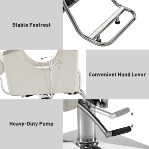 - Well Made & Exquisite Design - The appearance of the barber chair is simple and elegant, suitable for different styles of salons, barber shops, etc. The classic style with stainless steel hollow armrest brings a different effect to your barbershop.