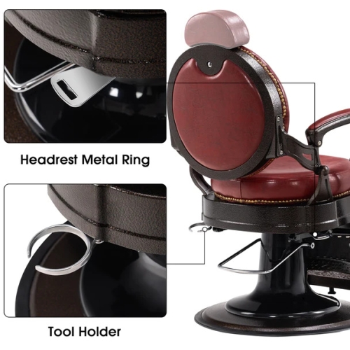 • Ergonomic Structure & Diversified Function - The soft headrest,adjustable leg rest and foot pedal make your customers feel more relaxed.The seat back is designed based on ergonomics theories and optimization theory and can reduce the pressure on the lumbar disc. We added a metal towel hanger, a tool hanger and a headrest metal ring to this vintage barber chair which would bring much more convenience to your daily work.