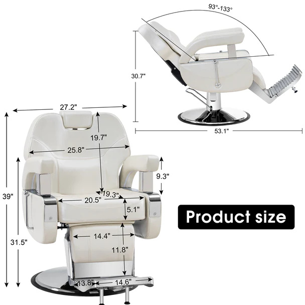 - Easy Adjustment - The classic barber chair can swivel 360° and can be flexibly reclined to 133°(backrest can be easily adjusted to multiple locking positions by a gas-piston lock &release mechanism).The headrest can be removed if the hair stylist need to wash hair for their customer.