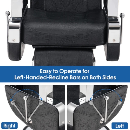 - Special Design-Two Recline Bars - Recline bars on both sides of the chair for conveniently adjusting the lying angle for left-handed user.No matter which direction the hair stylist works,they can use the recline bars to adjust the chair at their convenient.Especially when shaving or grooming.