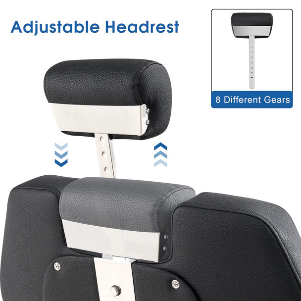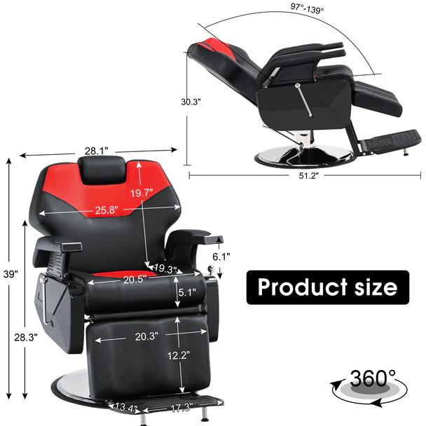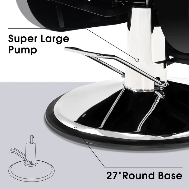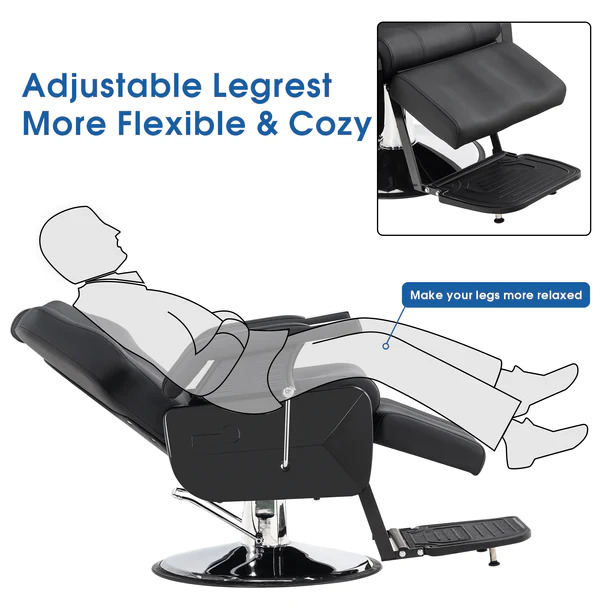 - Improved Stability & Flexibility - The classic barber chair can swivel 360° and can be flexibly reclined to 139°(backrest can be easily adjusted to multiple locking positions by a gas-piston lock &release mechanism).The headrest can be removed if the hair stylist need to wash hair for their customer.The footrest is fixed and the leg rest can be adjusted when reclining the chair which will bring more relax to your legs.The height adjustment of hydraulic pump is over a 5.1" range.
