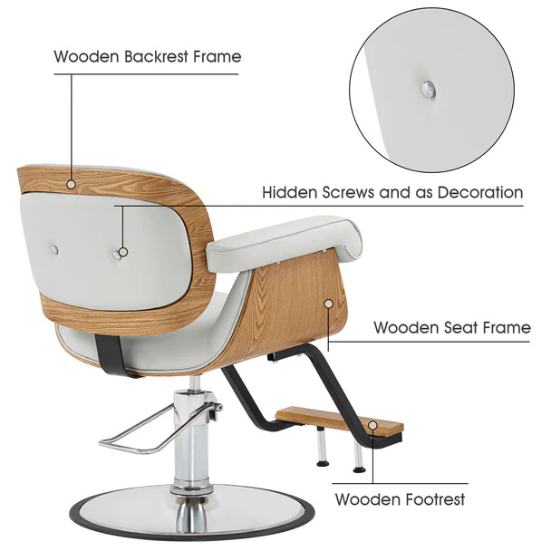 - Simple & Wooden Design - Stylish streamlined design brings a noble feeling to your store. The wood grain and texture synthetic leather and high-density foam are perfectly combined with fine workmanship. This salon chair is suitable for many scenes, suitable for various styles of salon, barber store, home salon, etc.