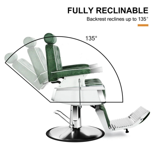 • Premium Material: Made with soft high-quality thick leather, this barber chair is waterproof, and can be effortlessly cleaned. Padded with high-density sponge provides your clients fully comfortable and relaxed whilst sitting. The sturdy circular chrome steel base gives the chair durability to last for long years