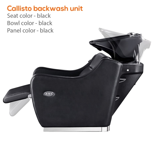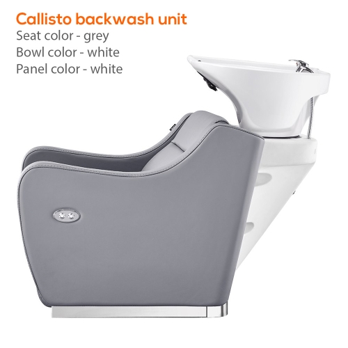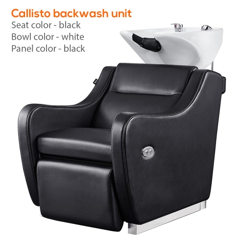 This Callisto is a comfortable and stylish backwash with adjustable sink. The ceramic sink has a silicone neck rest, explosion-proof and water-saving shower. Extra comfort from its covering of high density memory foam combined with electric adjustable footrest. Accompanying this backwash unit is our styling chair Bellano.