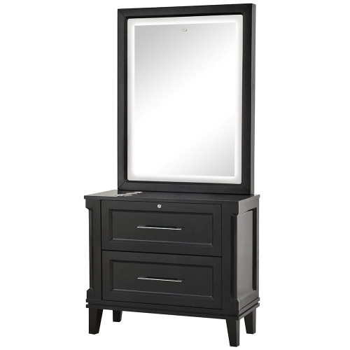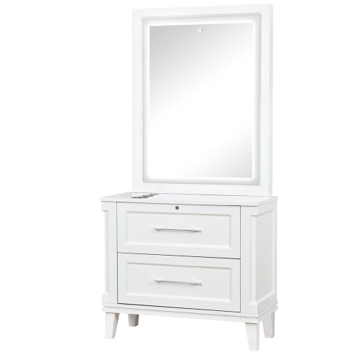 Equal parts wall-mounted styling station, salon mirror, and hair dressing station, the Fairview makes no compromises with its led illuminated mirror, hair dryer slots, and roomy drawers. Choose between two elegant wood finishes for the Fairview styling station, and establish that signature look every beauty and hair salon desires.