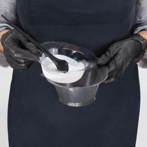 Hair Coloring Dyeing Kit includes a brush, bowl, and 20 disposable liners to accommodate liquid or cream colorants. This tint kit is ideal for salon or home use. The color bowl has level markings to allow for accurate measurements. Disposable bowl liners save time between clients – there is no need to wash the hair dye bowl – dispose of the used liner and replace it with a new one. Long bristles and contoured handles on the hair dye brush ensure precise application. A tinting brush and bowl with liners pair perfectly for color, bleach, tint, and more.