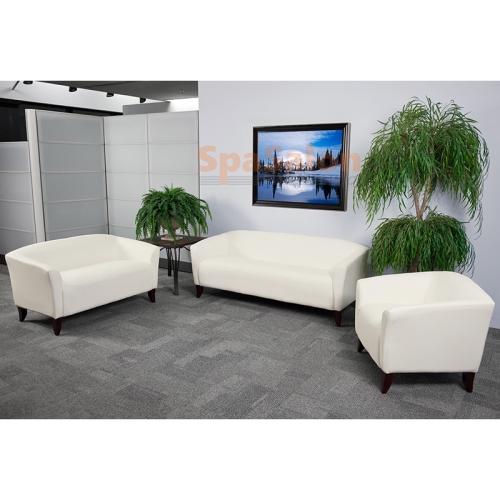 This collection will transform your reception area. This set will make an ideal choice in the office and as waiting room seating. The contemporary design of this furniture adapts in several different settings. Featuring sturdy hardwood construction, this set will keep up with the rigors of high volume use. This contemporary reception set is also made with foam padded LeatherSoft upholstery to provide comfortable seating while also allowing for easy cleanup. Not only will this set fit in a professional environment, but will add a modern look to your home.