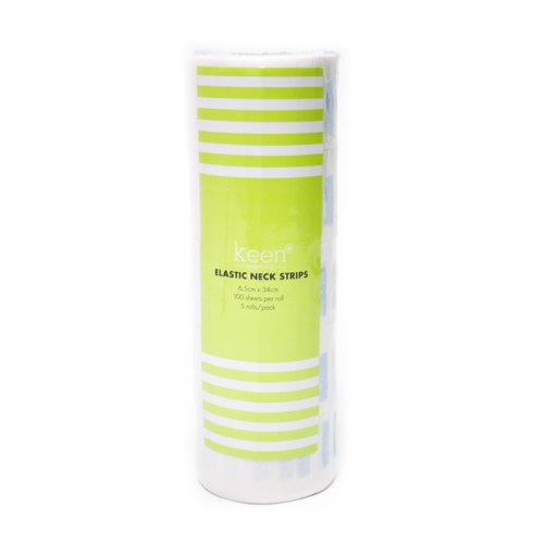 NECK PAPER FOR BARBERS AND STYLISTS: Package contains 5 rolls of 100 pre-cut neck strips each, totaling 500 strips / 20 packs of 5 rolls per case