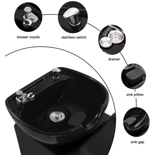 - Ceramic Shampoo Bowls for Salons: The ceramic bowl features high hardness and a smooth surface. The barber chair is safe for ash and does not mold easily. It is easy to clean and lasts as long as new.
