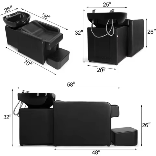 - Improved Comfort: The nearly flat design is ergonomic, does not wet clients' clothes, and makes them feel unprecedentedly comfortable and relaxed. The radian design of the seat cushion and backrest allows clients to enjoy shampoo services in a more elegant way.