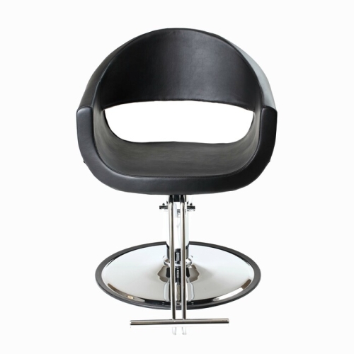 The Milla Styling Chair is uniquely elegant. The side view displays an angular curve along the back with precision stitching. This hair styling chair enhances any salon décor with its sleek high quality professional grade upholstery. Comes complete with a polished chrome hydraulic base, footrest, and lever. The Milla is a wonderful option for high-end salons or salons that have a European décor.