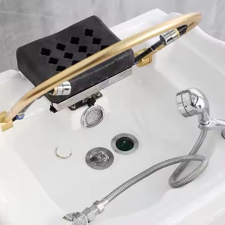 - Continuous water circulation arch Gold arch faucet delivers a gentle waterfall effect over the scalp for rinsing, treatment distribution, and relaxation.