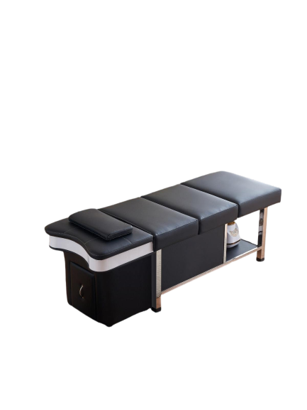 - All in one scalp spa bed Full length, padded massage bed with integrated shampoo basin so clients stay reclined from consultation to final rinse.