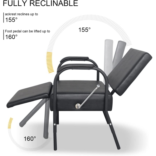 • MULTIPLE FUNCTION: The backrest and footrest are designed to be adjusted separately, which is more convenient to meet the needs of customers and practicality. The metal button on the left is used for backrest adjustment, and the lever on the right is used for footrest adjustment. It can be used for various purposes such as shampoo chair, waiting rest chair and leisure chair. The backrest can be adjusted up to 155° and the footrest can be adjusted up to 160°