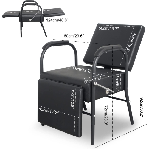 • OVERALL SIZE : 36.5"(D) x 23.6"(W) x 50"(H), maximum weight capacity: 300 lbs. Suitable for most groups. The Shampoo chair is made of heavy-duty metal steel construction, which is stable and non-slip and easy to maintain.