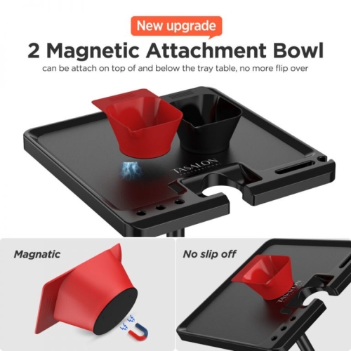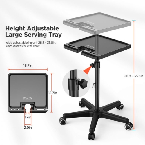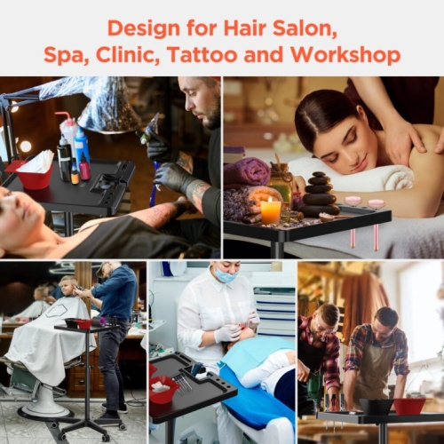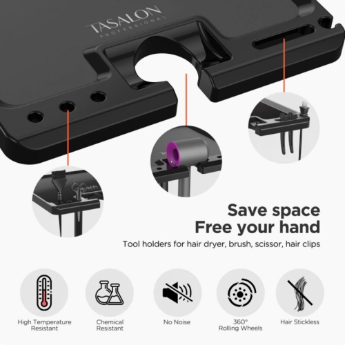 Adjustable salon tray is ergonomic-designed for storaging salon tools and accessories. Two magnetic bowls make it impossible to spill out the content in the bowl accidentally since they are attracted by the metal tray. Uniquely designed hair dryer/brushes/clips holder could keep your hands free, providing more working room. Based on 5 legs rolling wheels, out salon tray could move around quietly, durably and smoothly. Besides, our salon rolling cart is made of high-temperature and chemical-resistant iron materials, which is sturdy for use. This versatile tray with wheels can work as a medical tray, a tattoo tray on wheels, a hair color organizer, a barber tray, or a beauty cart, meeting all your needs. In the improbable case you face any issue with your stylist rolling tray, or you are not fully satisfied with its operation, we offer you a money-back guarantee.