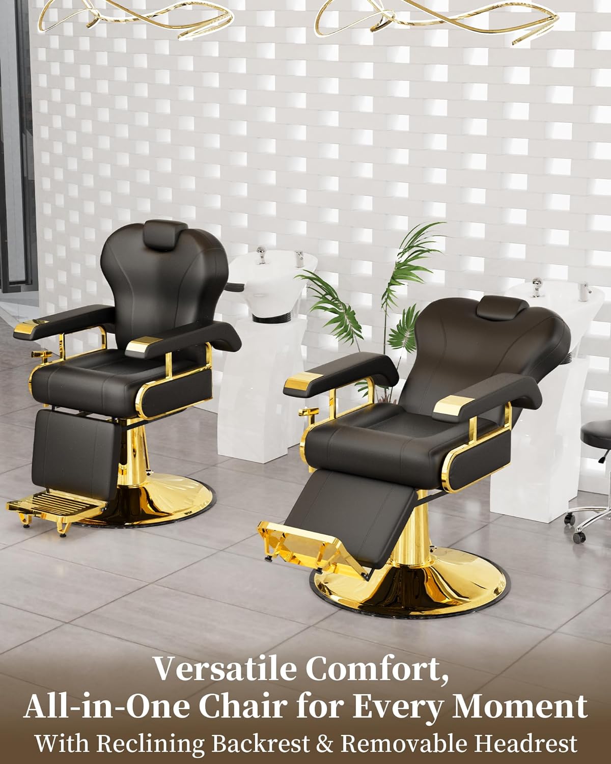 - Premium Stainless Steel Frame - Built with a sturdy steel frame, our black gold salon chair stands out from low-cost alternatives that use inferior wooden frames. This design ensures durability for daily use in busy hair salons.