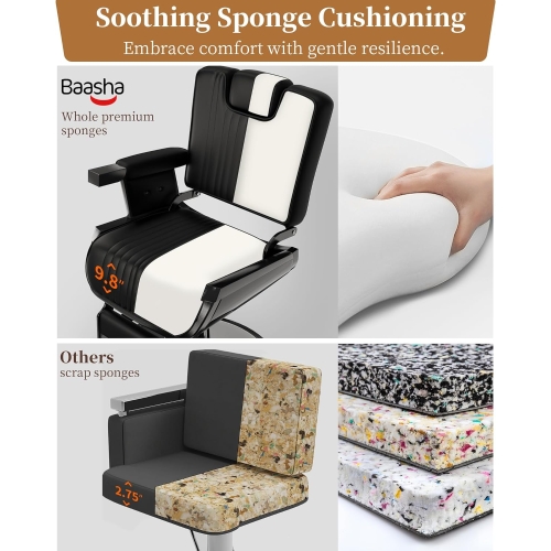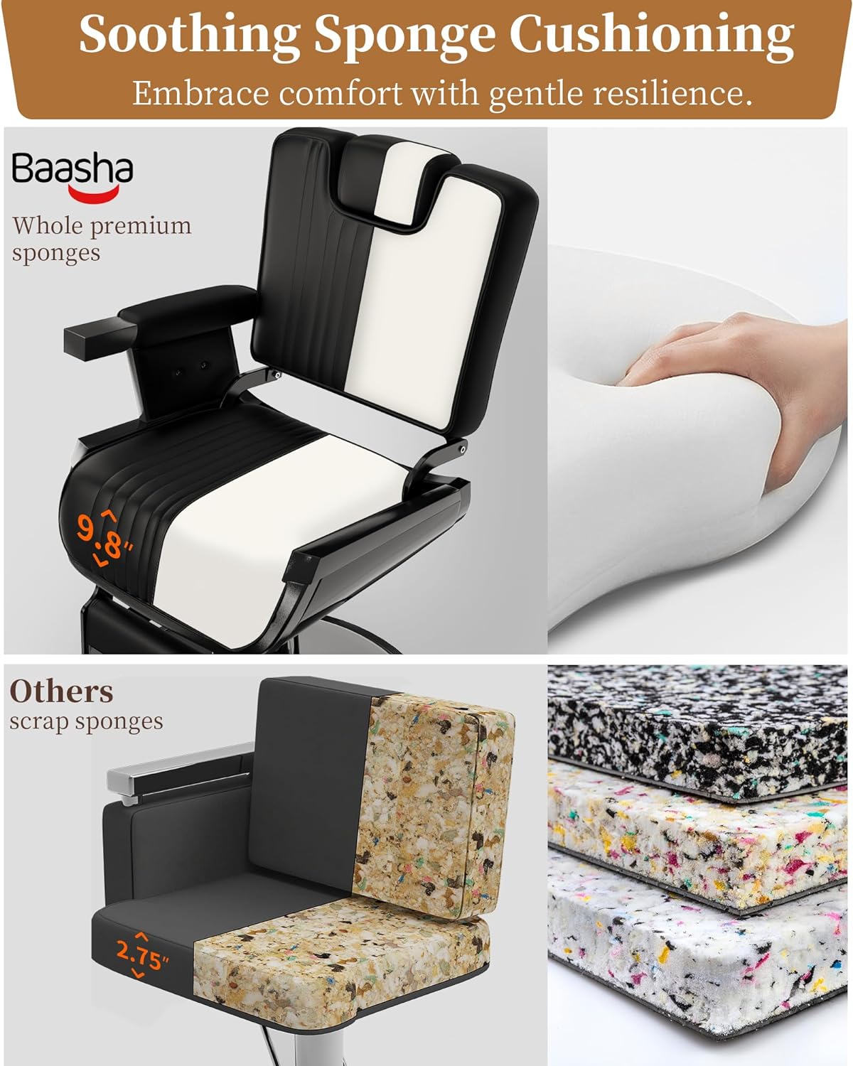 - Built to Last - Made with high-quality materials and construction techniques, the Baasha barber chairs for barbershop is built to withstand daily use. The sturdy steel frame and durable upholstery of this stylist chair ensure longevity, while its weight capacity of up to 440 lbs means it can accommodate clients of all sizes.
