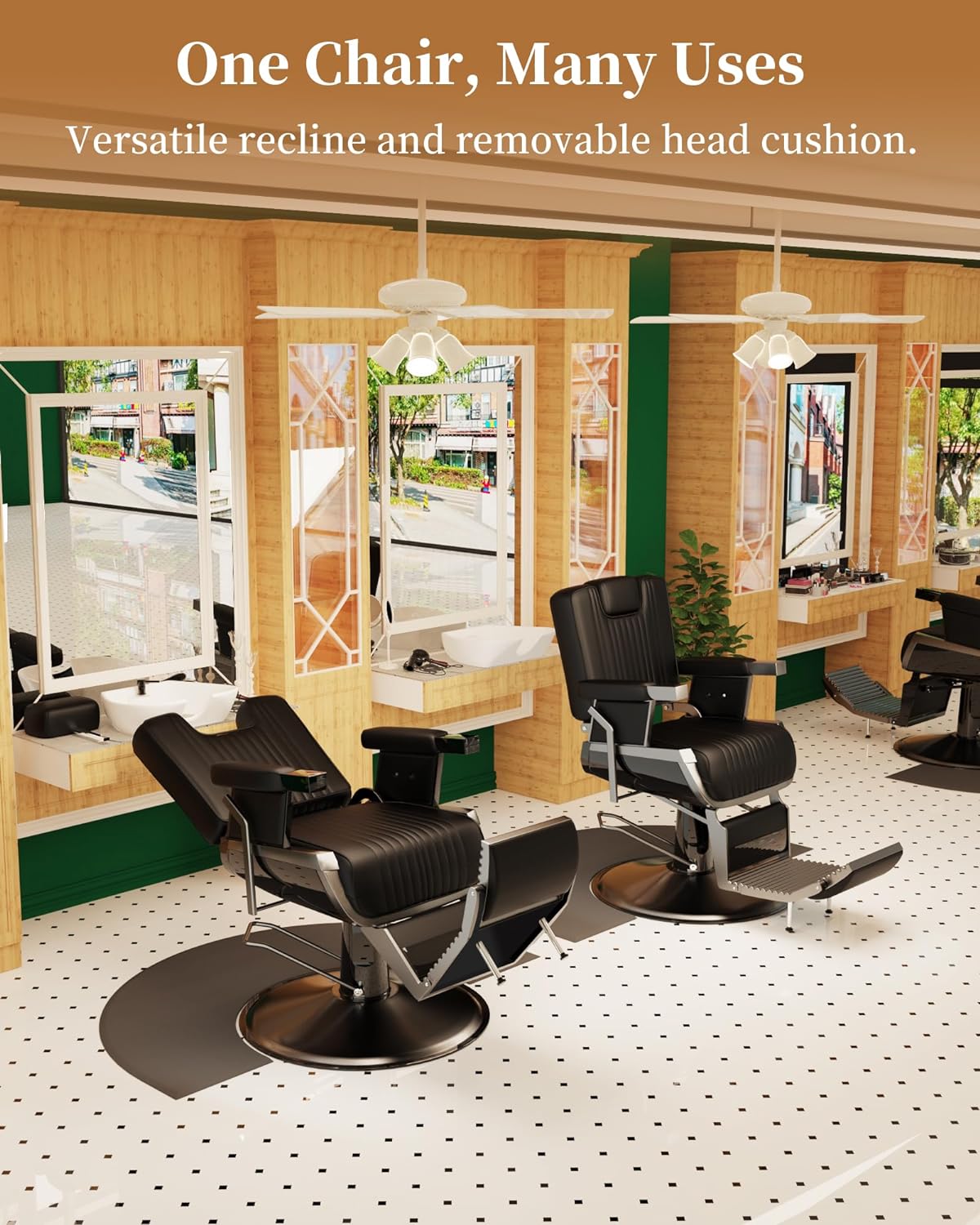 - Versatile Design - With its reclining backrest and removable headrest this reclining salon chair can be used for various services, including haircuts, styling, makeup, and facials. It's suitable for use in barbershops, salons, spas, and even at home.