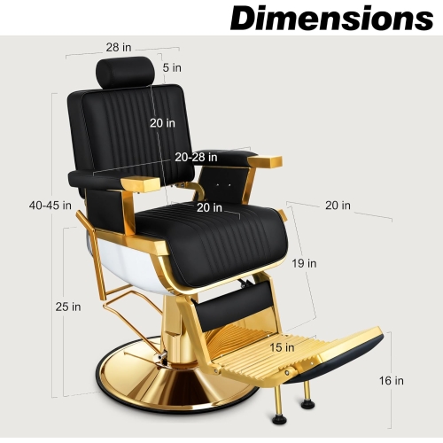 - Sleek & Modern Design - This all-black barber chair boasts a sleek and modern design that's sure to elevate any salon or home decor. Its contoured seat and backrest provide ample support and comfort, while the elegant leather upholstery adds a touch of luxury.