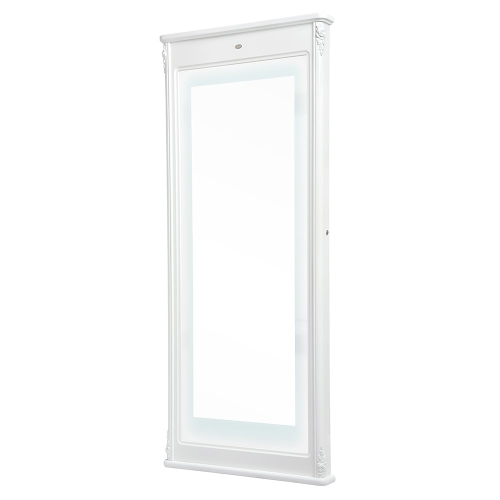 Simple yet sophisticated, the Ares wall-mounted styling station showcases a full length mirror with LED lighting, and framed by glossy white borders and refined-floral accents.