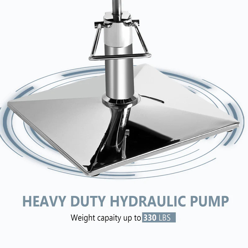 - Well-Made & Sturdy - Built with a robust hydraulic pump and stainless steel construction, this hair salon chair offers enhanced durability and resistance to damage. The heavy-duty square base, measuring 19.3 inches, provides superior stability and weight-bearing capacity. A modern T-shaped footrest made of stainless steel enhances both comfort and sturdiness. Maximum weight capacity: 330 lbs.