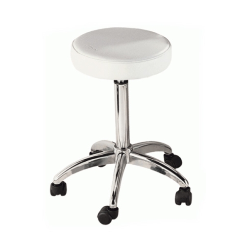 Twist Height Adjustment, Chrome Base, Round Seat, White Color.