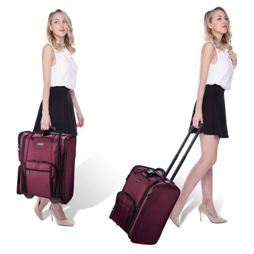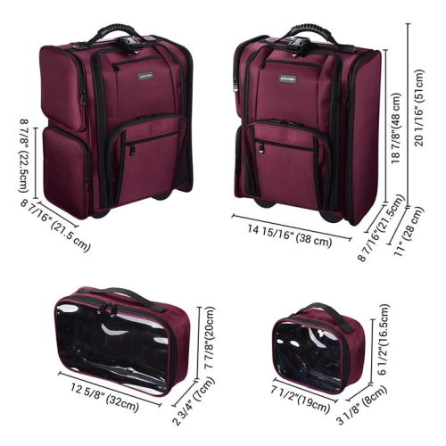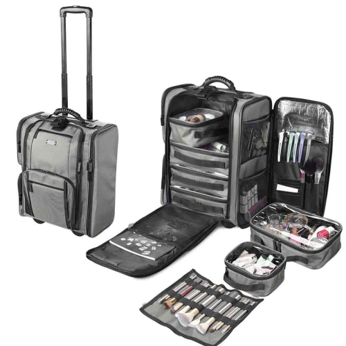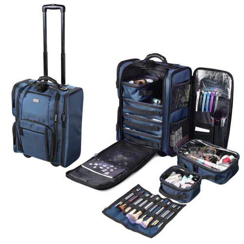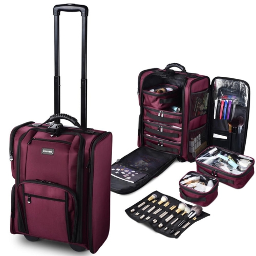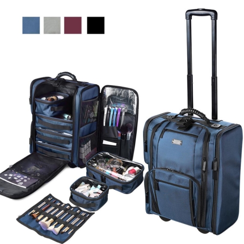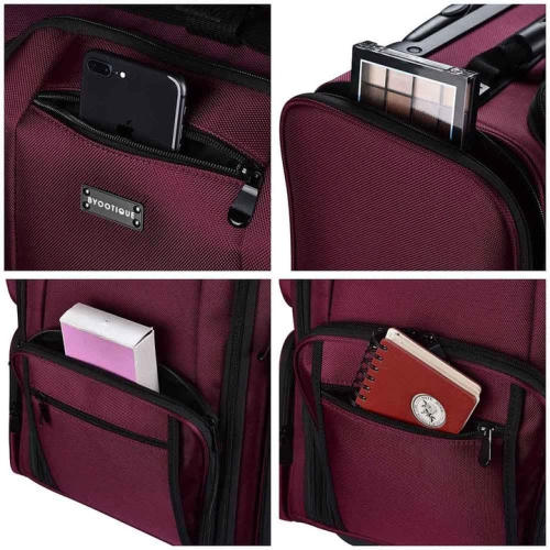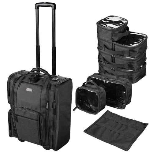 - Byootique® Portable Rolling Nylon Makeup Train Case with 2 Wheels & 6 Removable Independent Travel Toiletry Bags - for your customizable free combination usage
