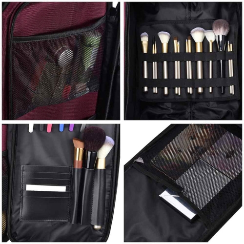 This Soft Sided Rolling Makeup Case w/ 6 Compartments Bag, which helps you to carry and tidy the cosmetics and articles you want to carry easily and neatly.