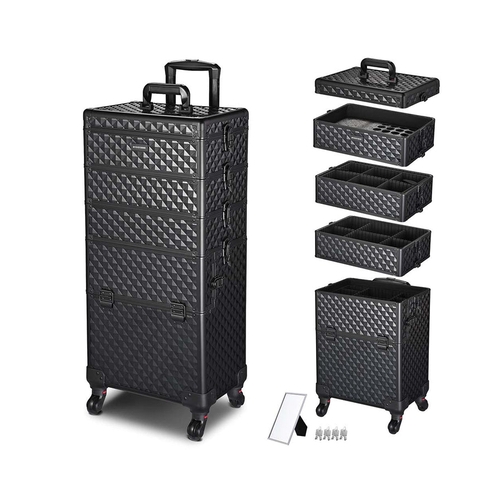 - Unique Diamond Pattern - Byootique Rolling Large Makeup Case with unique black diamond pattern finish, sharp and trendy