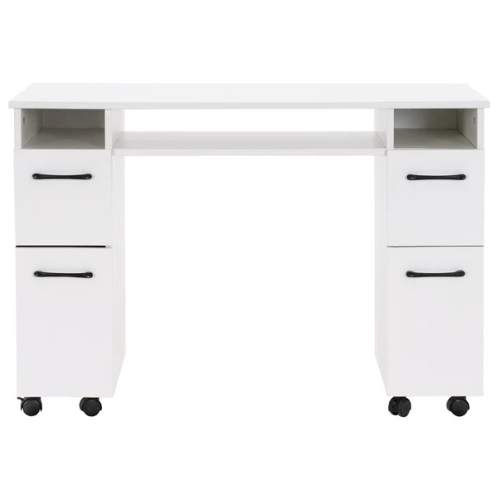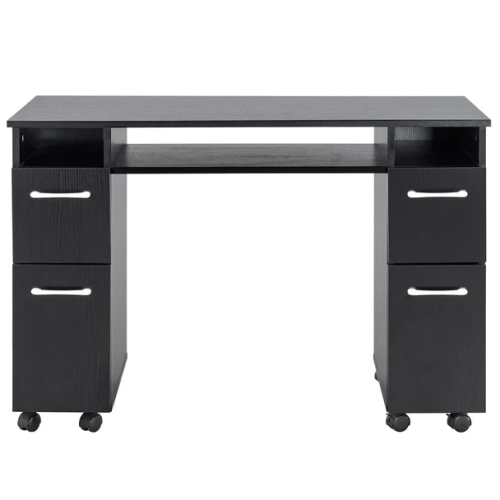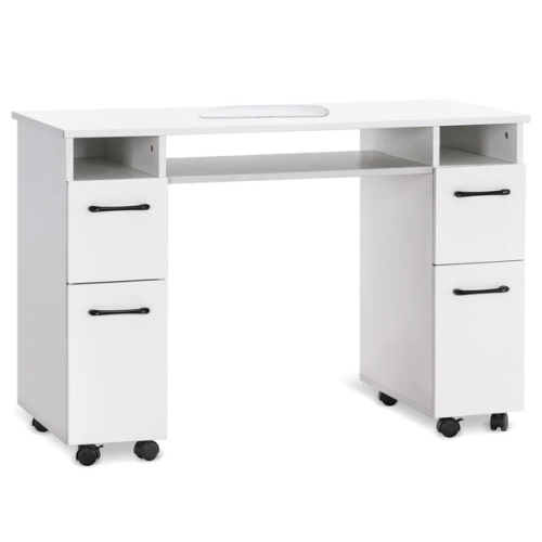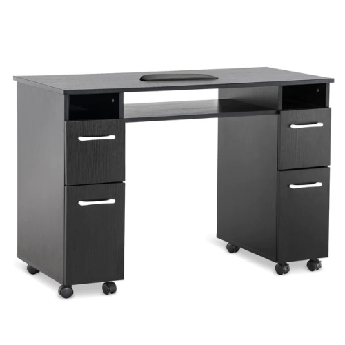 This manicure table is the one you are looking for! It has HUGE working tabletop and plenty of storage space. 8 lockable wheels are fitted enable you to move the station around easily. Smooth surface provides your customer comfortable felling during the nail working process.