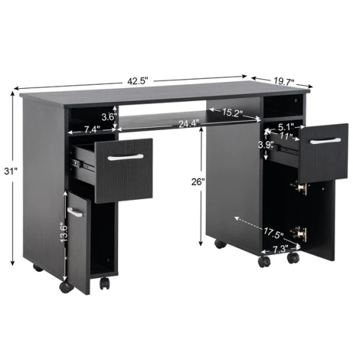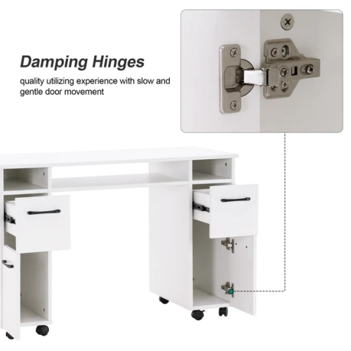 • Easy to move: 8 rolling wheels are fitted to manicure table, includes 4 lockable wheels, the table has extraordinary flexibility and utility. The wheels enable you to move the nail desk easily in your salon and workshop. Lockable wheels provide you excellent stability during the nail work.