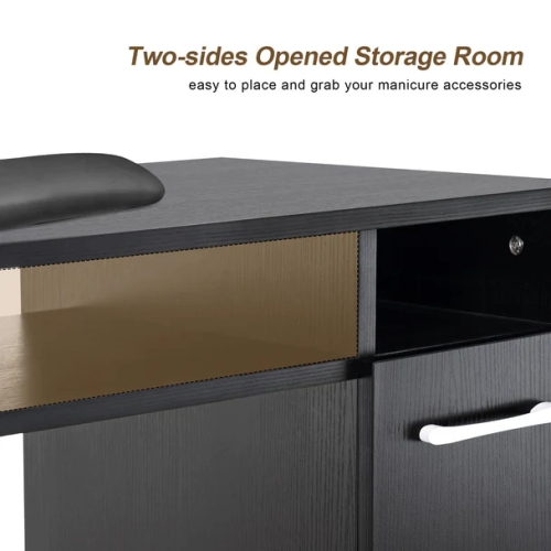 • Ergonomic design: This beauty salon workstation comes with elegant wrist rest padding and comfortable arc shape for customer maintain a relaxed gesture during nail work. The huge tabletop and storage room makes it even more easy and handy for you to reach the daily used tools.